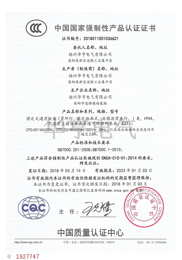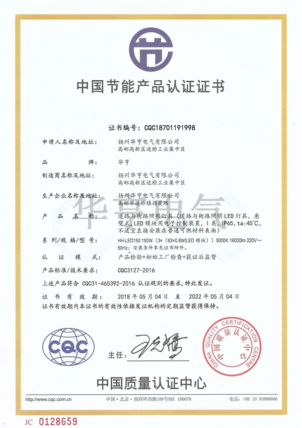本公司生產(chǎn)設(shè)備完善,技術(shù)方面先進,檢測設(shè)備齊全,工藝操作精湛,質(zhì)量性能可靠。已被江蘇省揚州市評為“重合同、守信用”企業(yè),被質(zhì)量技術(shù)監(jiān)督局評為“質(zhì)量信得過企業(yè)”,被江蘇省戰(zhàn)略委員會評為“省照明十佳”企業(yè),并且已經(jīng)通過ISO 9001質(zhì)量體系認證、ISO 14001環(huán)境管理體系認證、ISO45001職業(yè)健康管理體系認證,榮獲中國質(zhì)量認證多項認證證書:及“CCC”認證、中國節(jié)能產(chǎn)品認證證書、太陽能產(chǎn)品CQC認證證書(金太陽認證)、中國環(huán)保產(chǎn)品Ⅱ型認證證書,國際歐盟頒發(fā)的CE認證,公司發(fā)展多年通過自主創(chuàng)新榮獲照明行業(yè)多項發(fā)明新型,具有照明工程國家“雙甲”資質(zhì),城市及道路照明工程ZY承包壹級、照明工程設(shè)計專項甲。